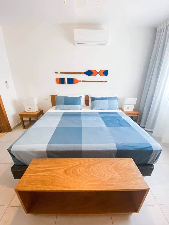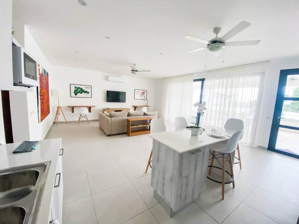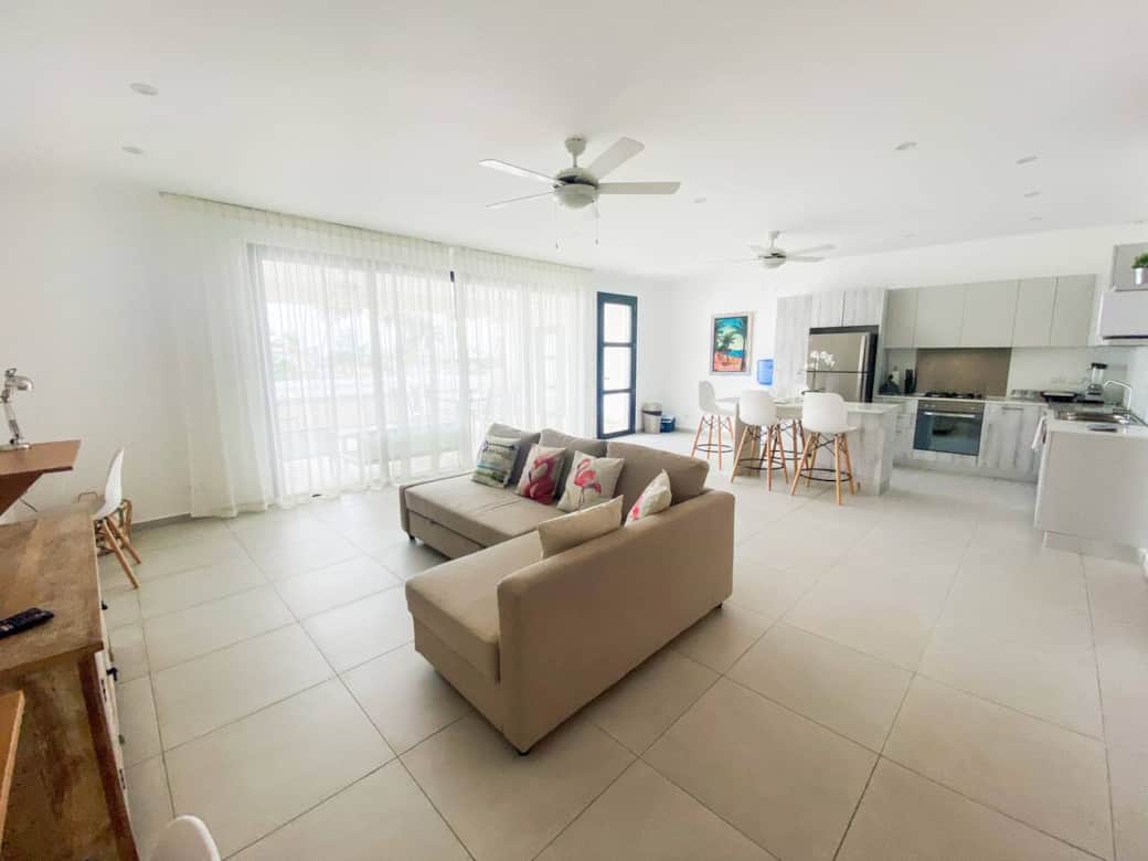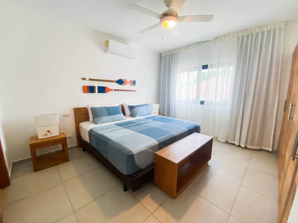 This modern condo is located only steps to the beach, shopping and some of the best restaurants in Las Terrenas. No car needed! Complex has 24 hour security, pool, back up generator and more. Great location, short walking distance to some of the most popular restaurants in town, minimarkets, cigar and liquor shops, bakeries, fish market and more. Steps to Punta Popi beach and 10-15 minute walk to Las Ballenas beach